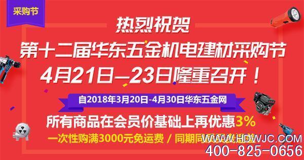 第11屆華東五金機(jī)電建材采購節(jié)開始啦2017年華東五金機(jī)電建材采購節(jié)就要開始了你準(zhǔn)備好了嗎?4月22-24號(hào),這是一場(chǎng)面向全國(guó)乃至國(guó)際的線上、線下的五金機(jī)電建材采購盛宴。精彩內(nèi)容如下:華東五金城市場(chǎng)已被授予省級(jí)“正版正貨”示范店稱號(hào),市場(chǎng)內(nèi)3000余戶商家、25萬多種產(chǎn)品、上萬個(gè)知名品牌舉行室外商品展,實(shí)實(shí)在在拿出優(yōu)惠、讓利、回饋廣大采購商。本次采購節(jié),華東五金城將聯(lián)合國(guó)內(nèi)五金電商巨頭“華東五金網(wǎng)”,在華東五金網(wǎng)上開辟“華東五金機(jī)電關(guān)注:622017-04-06