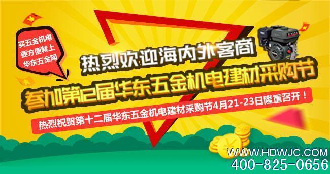 第10屆華東五金機(jī)電建材采購節(jié)開始啦2016年華東五金機(jī)電建材采購節(jié)就要開始了,你準(zhǔn)備好了嗎?4月22-24號(hào),這是一場(chǎng)面向全國(guó)乃至國(guó)際的線上、線下的五金機(jī)電建材采購盛宴。精彩內(nèi)容如下:1、華東五金城市場(chǎng)已被授予省級(jí)“正版正貨”示范店稱號(hào),市場(chǎng)內(nèi)3000余戶商家、25萬多種產(chǎn)品、上萬個(gè)知名品牌舉行室外商品展,實(shí)實(shí)在在拿出優(yōu)惠、讓利、回饋廣大采購商。2、本次采購節(jié),華東五金城將聯(lián)合國(guó)內(nèi)五金電商巨頭“華東五金網(wǎng)”,在華東五金網(wǎng)上開辟“華關(guān)注:732016-04-10