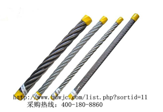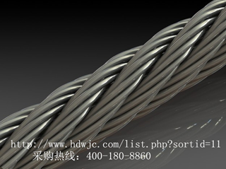由若干細鋼絲圍繞一根金屬芯擰制而成,撓性差,反復彎曲時易磨損折斷,主要用作不運動的拉緊索。