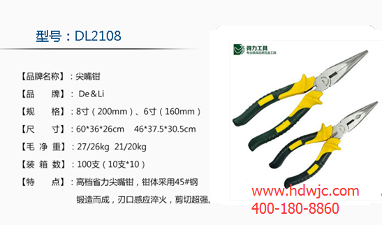 尖嘴鉗又稱(chēng)修口鉗、尖頭鉗、尖咀鉗同,它是由尖頭、刀口和鉗柄組成,電工用尖嘴鉗的 材質(zhì)一般由45#鋼制作,類(lèi)別為中碳鋼。含碳量0.45%,韌性硬度都合適。目前華東五金網(wǎng)已有賣(mài)尖嘴鉗品牌十多家商戶(hù),像得力、世達(dá)、百獅威等等,各式尖嘴鉗應(yīng)有盡有。