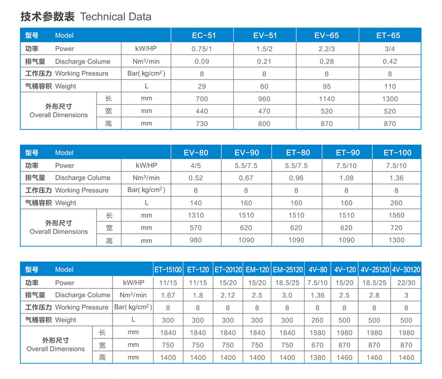 風(fēng)冷卻活塞式空氣壓縮機(jī) EC/EV/EM/4V/ET