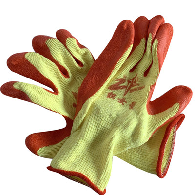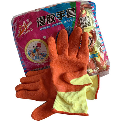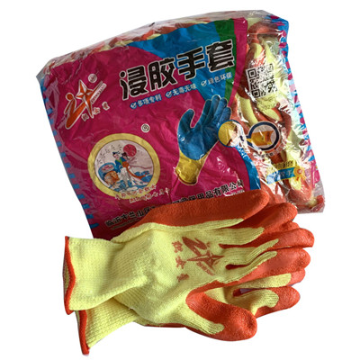 勞保手套新款拇指全浸手套皺紋加厚耐磨搬運(yùn)防滑浸膠織女星手套