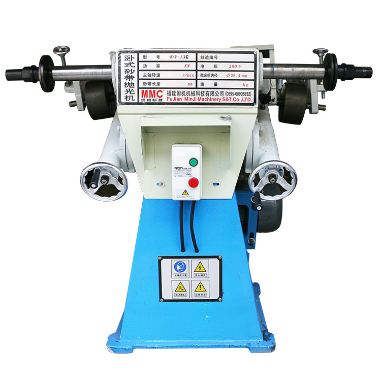 臥式砂帶拋光機軸承、傳動軸經(jīng)外圓磨加工合成。該機器主軸擴拆卸方便,換皮帶需幾分鐘就行。