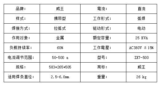 威王工程專用機(jī)焊機(jī)ZX7-500參數(shù)表