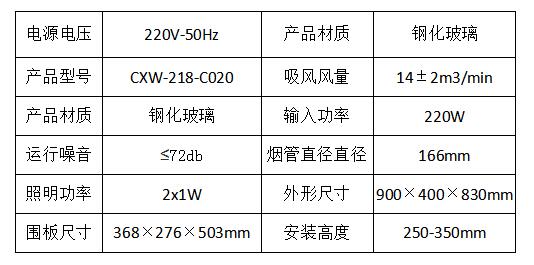 榮事達(dá) CXW-218-C020大吸力油煙機(jī)參數(shù)表