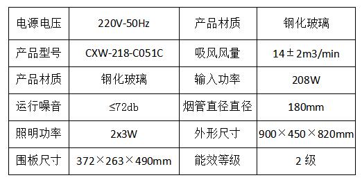 榮事達(dá)CXW-218-C051C家用側(cè)吸式大吸力煙機(jī)參數(shù)表