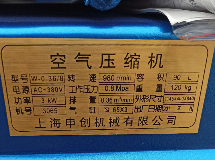 申創(chuàng)活塞式空氣壓縮機(jī)w-0.36/8參數(shù)