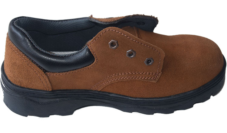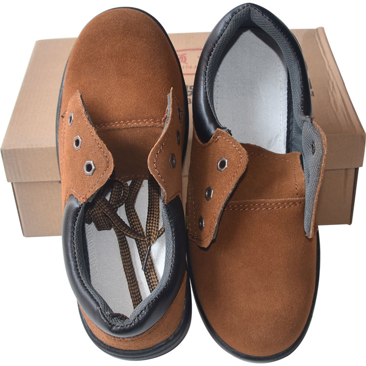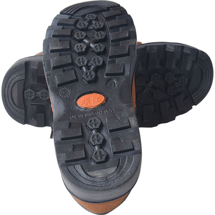 安全鞋鞋面為反絨牛皮材質(zhì),防砸防刺設(shè)計(jì),鞋頭內(nèi)置鋼包頭防砸設(shè)計(jì),鞋底內(nèi)置鋼中底防穿刺設(shè)計(jì)。