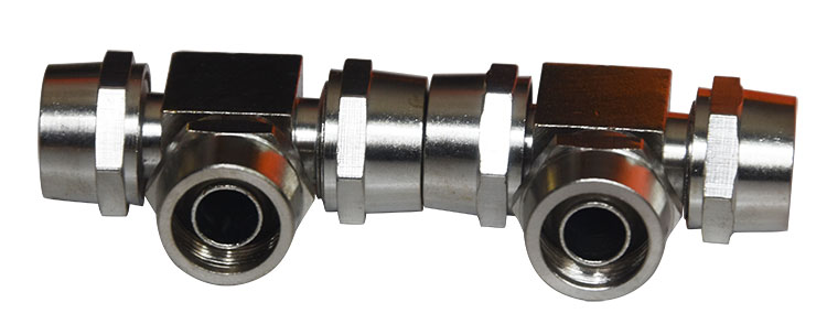 氣動(dòng)氣管快擰接頭T型三通鎖緊螺帽鎖母式高壓銅鍍鎳密封性好