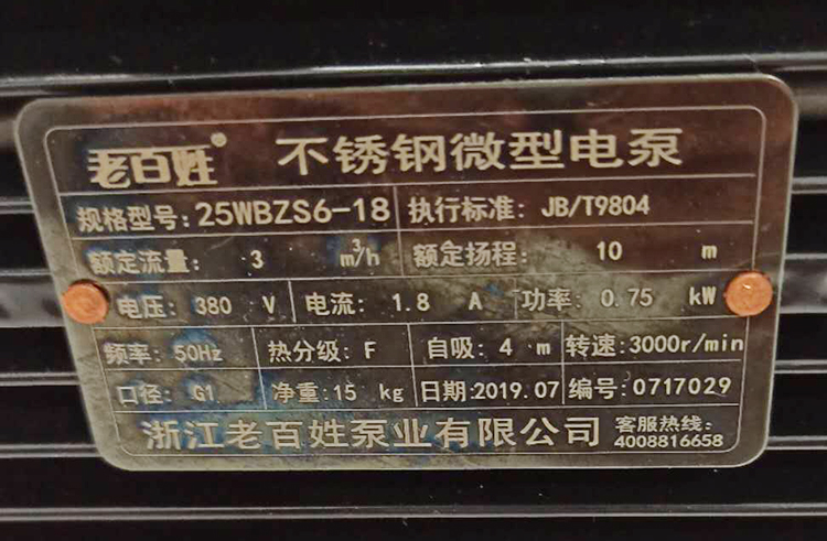 老百姓水泵25WBZS6-18不銹鋼微型電泵機(jī)身參數(shù)一目了然