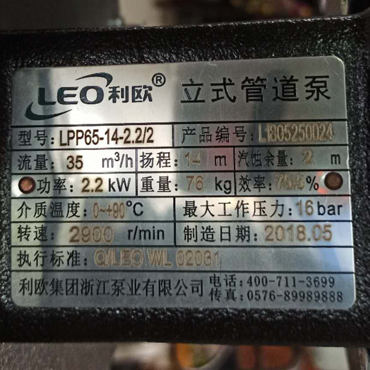 利歐立式管道泵循環(huán)泵LPP65-14-2.2/2參數(shù)一目了然