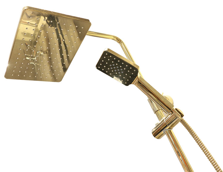 東鵬明裝淋浴大花灑三功能按鍵式套裝沐浴器花灑JJH2218X金色