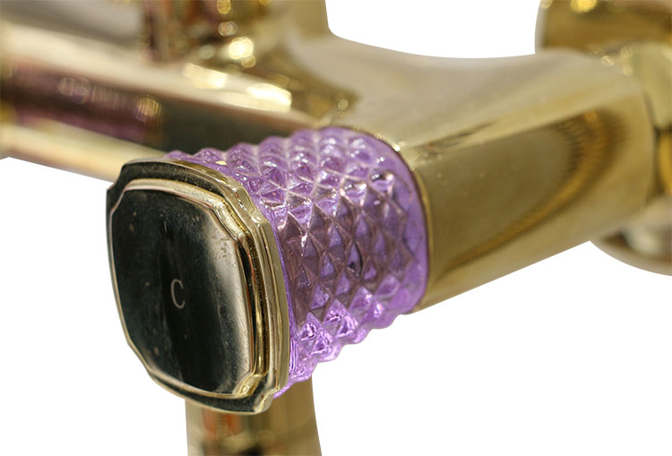 沐浴器花灑設(shè)計(jì)元素源于馬蹄蓮花線條與色彩典雅的紫色琉璃把手