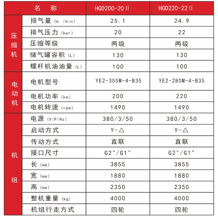 電驅(qū)-HGD兩級壓縮高壓系列移動空壓機