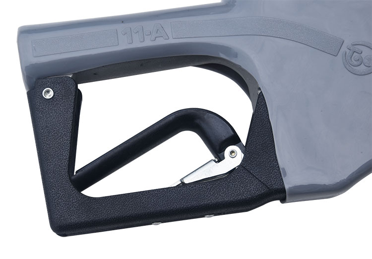 11-A型自封加油槍帶有一鍵鎖定功能,三檔流量隨意控制,無需手扶,
