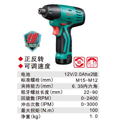 東成DCA充電式?jīng)_擊起子機(jī)ADPL02-8E型參數(shù)