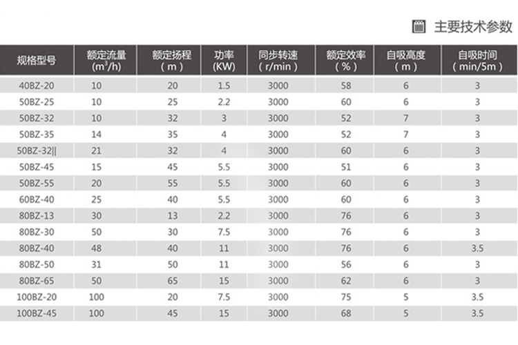 離心泵BZ/ZX自吸式離心泵參數(shù)圖