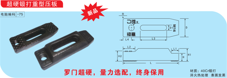 超硬鍛打重型壓板材質(zhì)40Cr鍛打,淬火熱處理,表面發(fā)黑。