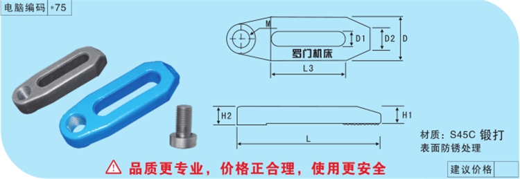 鍛打機(jī)床壓板材質(zhì)S45C,鍛打,表面防銹處理。