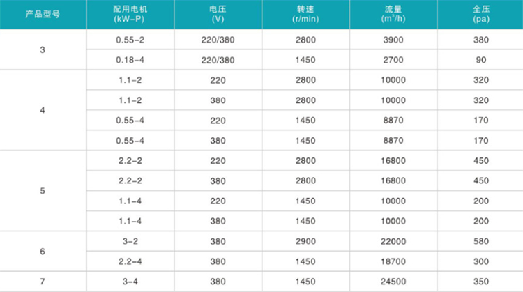 移動(dòng)式軸流風(fēng)機(jī)主要參數(shù)