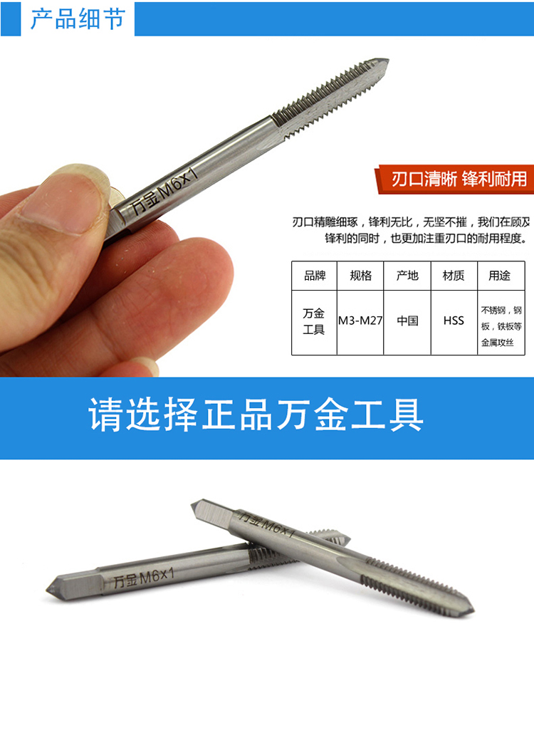 萬金工具手用絲錐M3-M27
