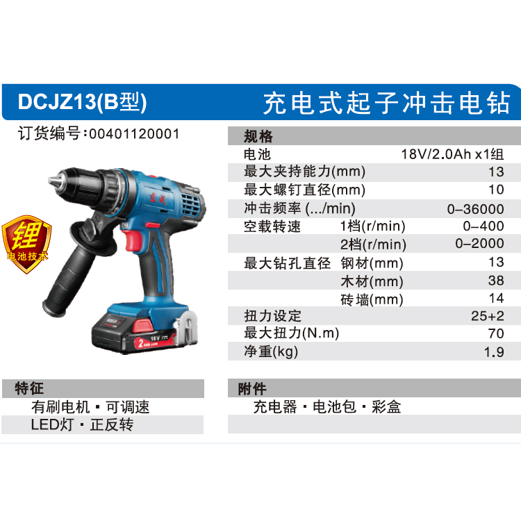 東成 鋰電18V雙速充電式起子沖擊電鉆
