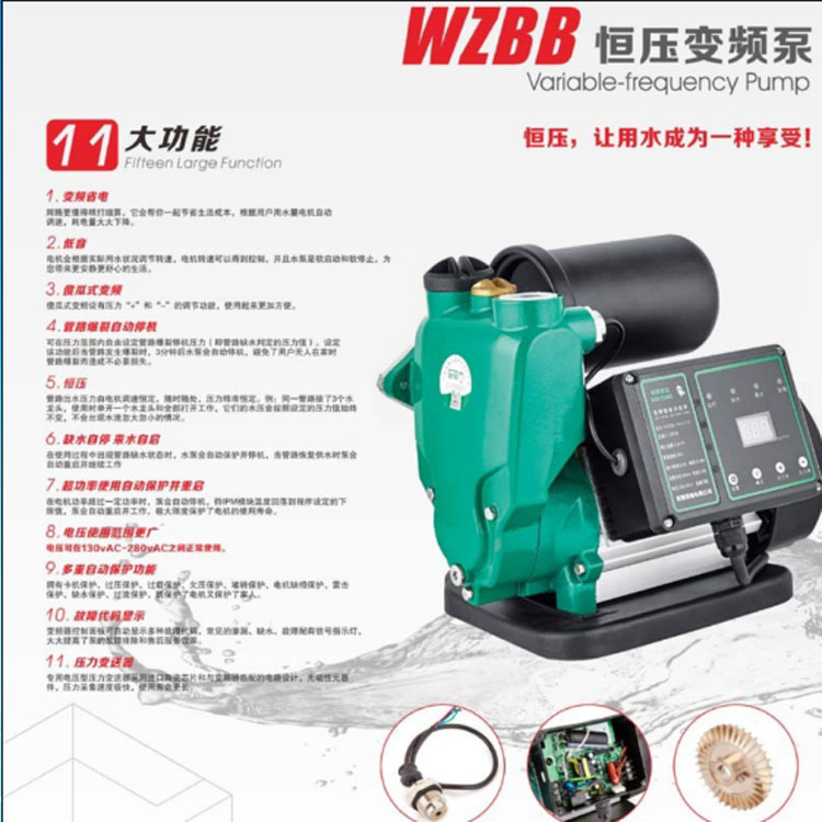 采用智能變頻恒壓微控技術,水流通過水泵后,微電腦會根據(jù)水壓壓力進行調壓,以達到省電