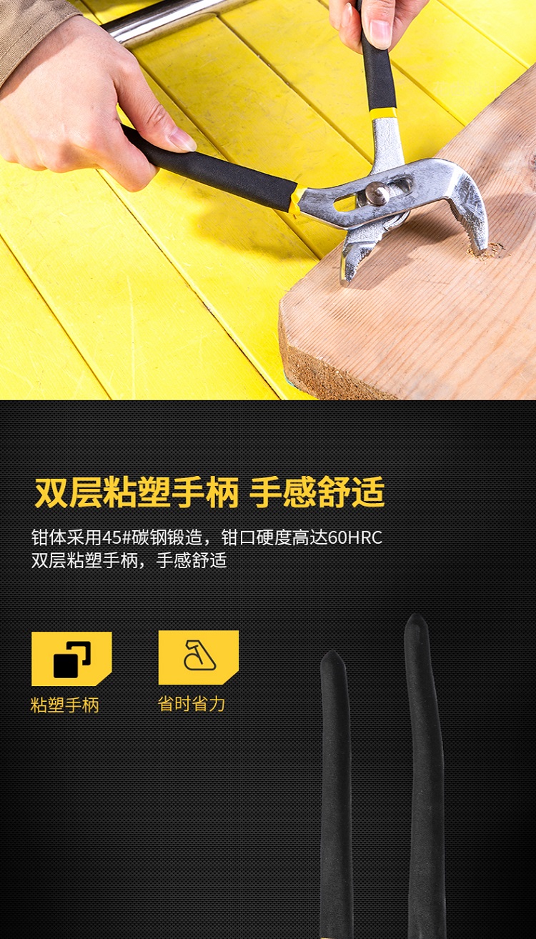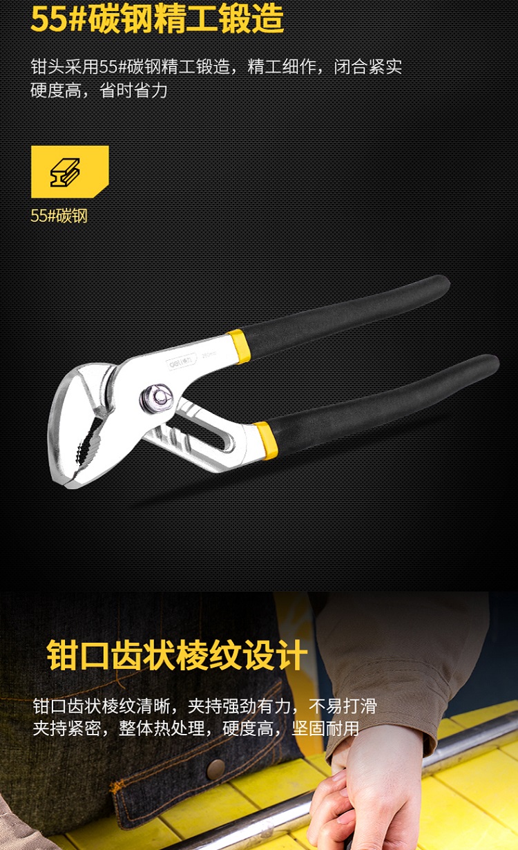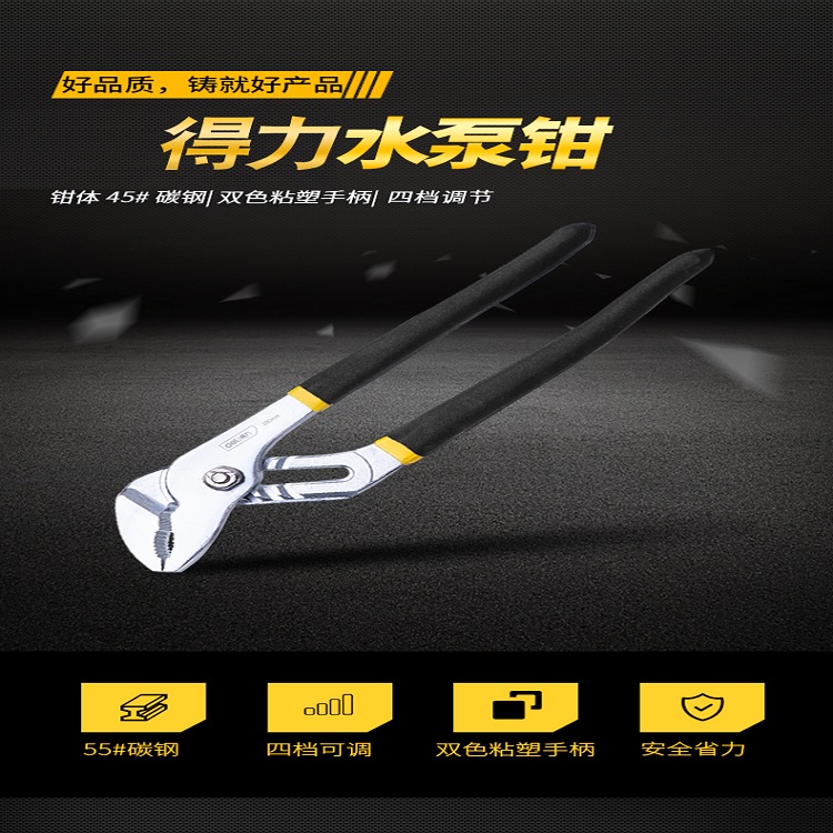 得力水泵鉗不易打滑,夾持緊密,整體熱處理,硬度高,堅固耐用。