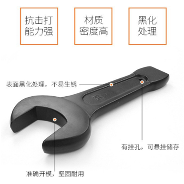 虎工敲擊開(kāi)口扳手表面黑化處理,不易生銹,準(zhǔn)確開(kāi)模,堅(jiān)固耐用。有掛孔,可懸掛儲(chǔ)存。