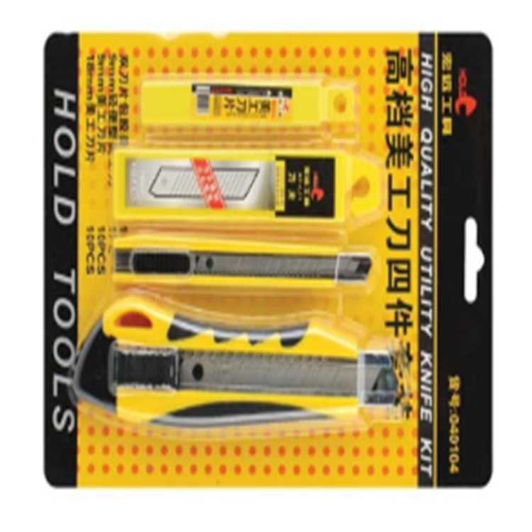 宏遠美工刀套裝采用優(yōu)質(zhì)高碳鋼制造刀片,整體熱處理,硬度高,刀口鋒利,使用壽命更持久。
