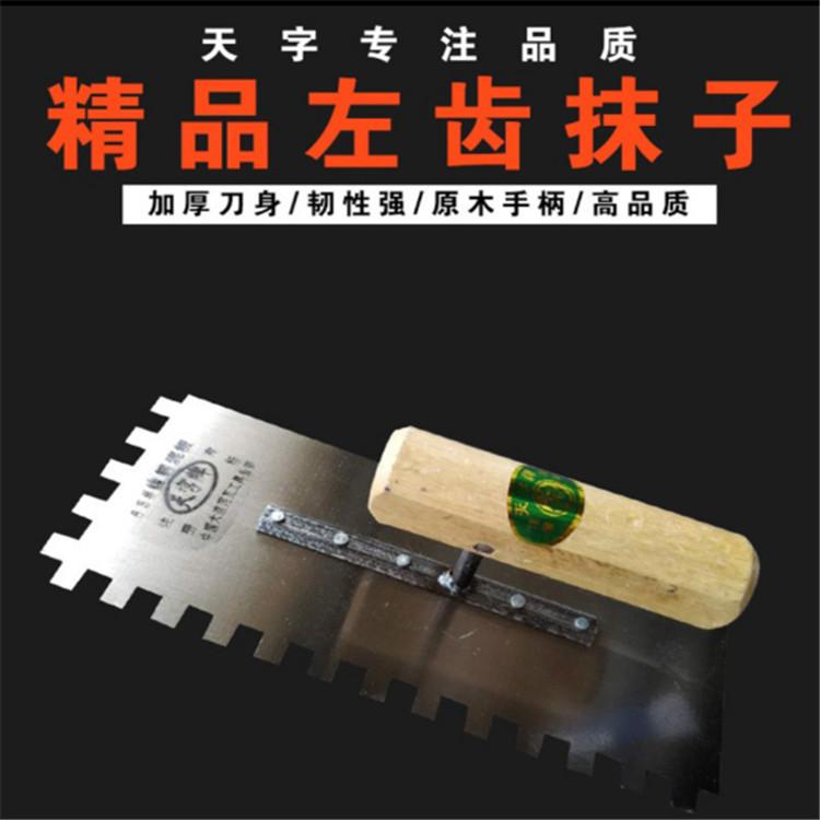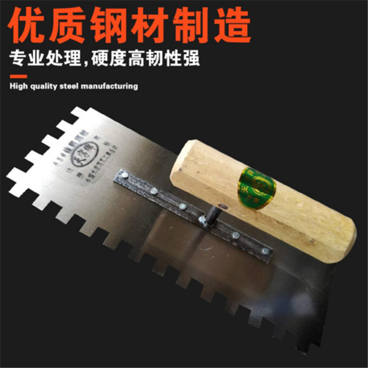 鑫誠(chéng)左齒抹子優(yōu)質(zhì)鋼材制造,專業(yè)處理,硬度高、加厚刀身、韌性強(qiáng)、原木手柄、高品質(zhì),精品小尖齒抹子。