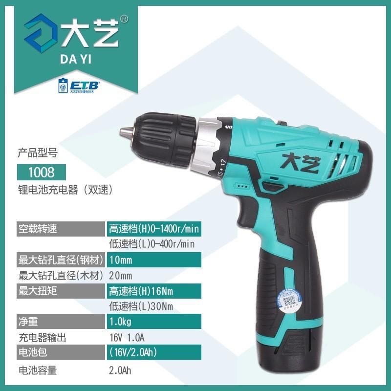 大藝 鋰電池充電鉆(雙速雙電池16V)