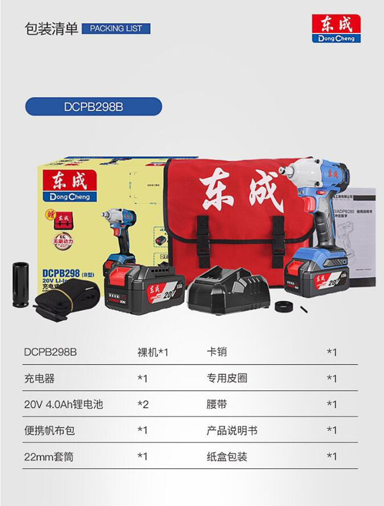 東成充電式無刷電動(dòng)扳手 鋰電沖擊扳手20V架子工充電電扳手