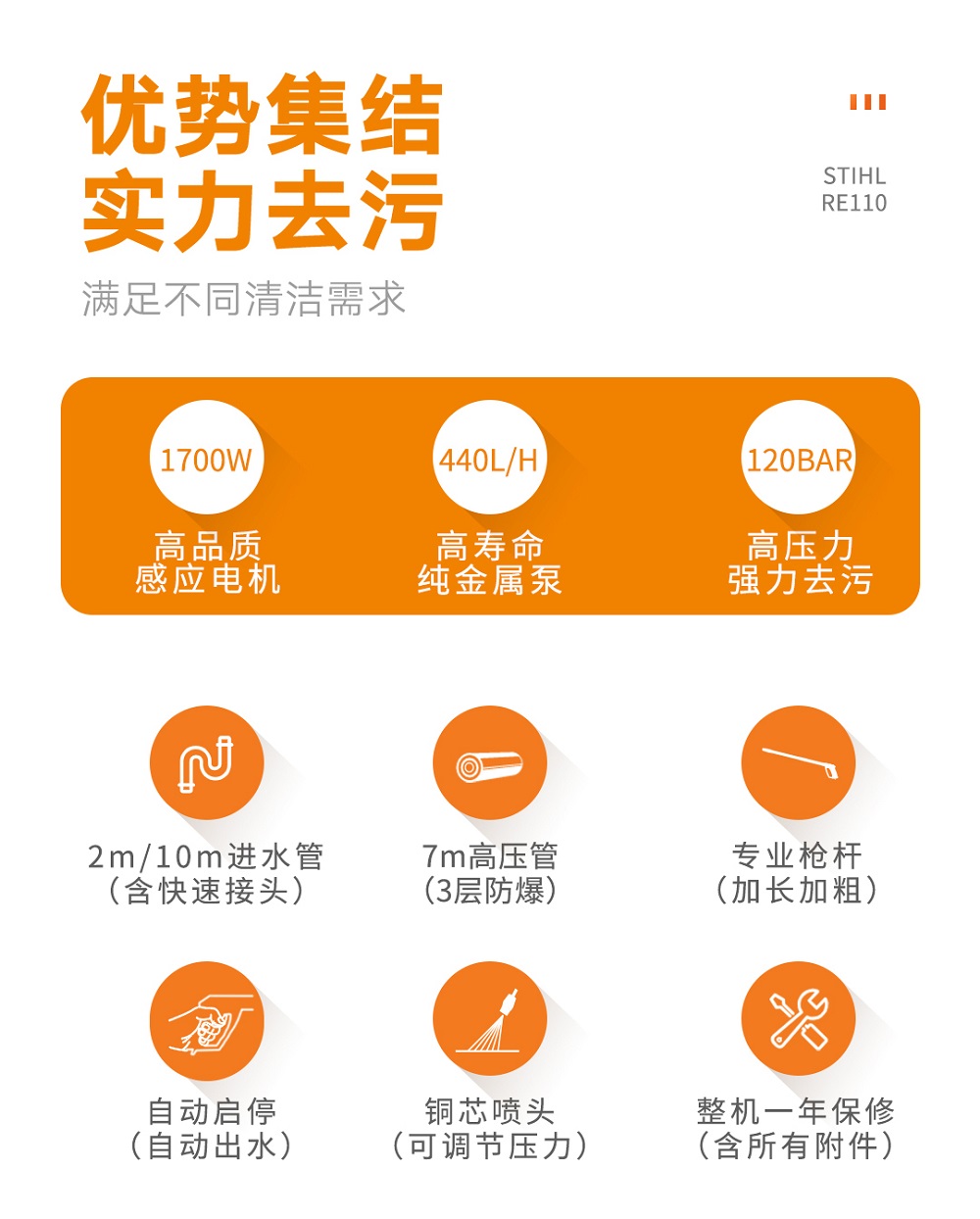 德國斯蒂爾STIHL高壓清洗機(jī) 多功能清潔工具 220v商用水槍 RE110