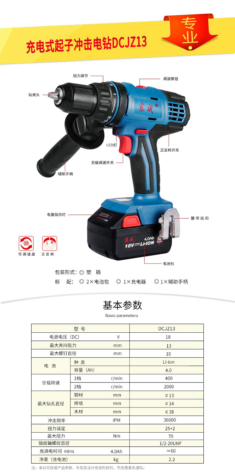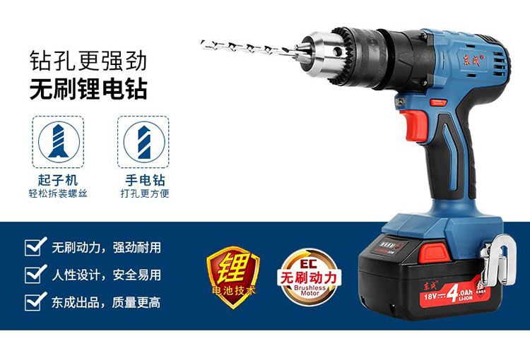 東成電動工具 18V雙速充電式起子沖擊電鉆DCJZ13E/DCJZ16E型
