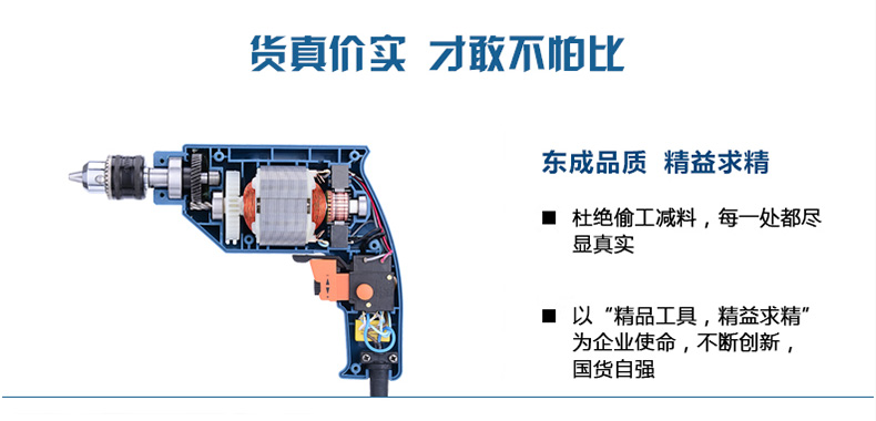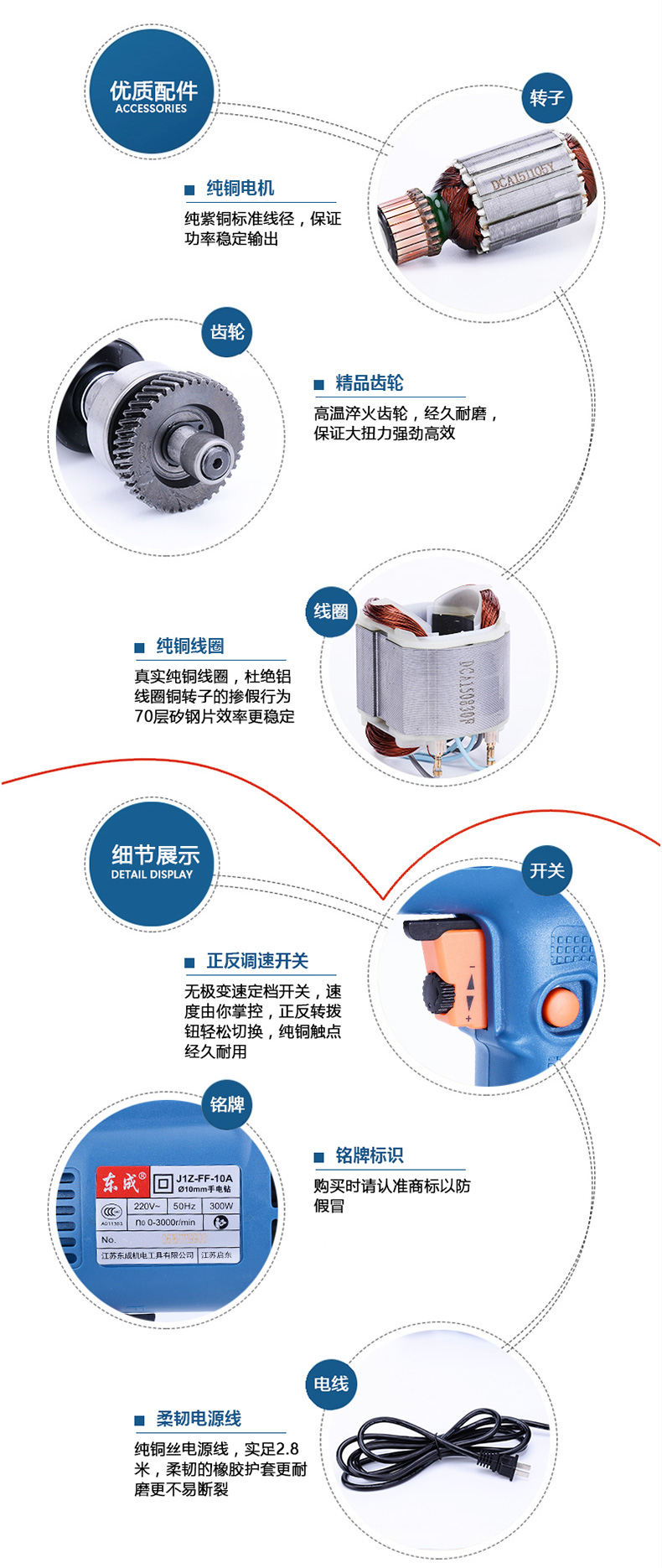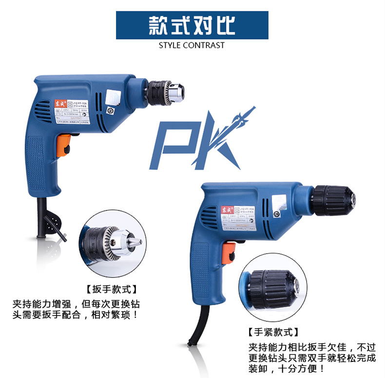 東成手電鉆家用可調速J1Z-FF-10A手持手電鉆多功能電轉套裝電動工具電動螺絲刀改錐東城 自鎖夾頭