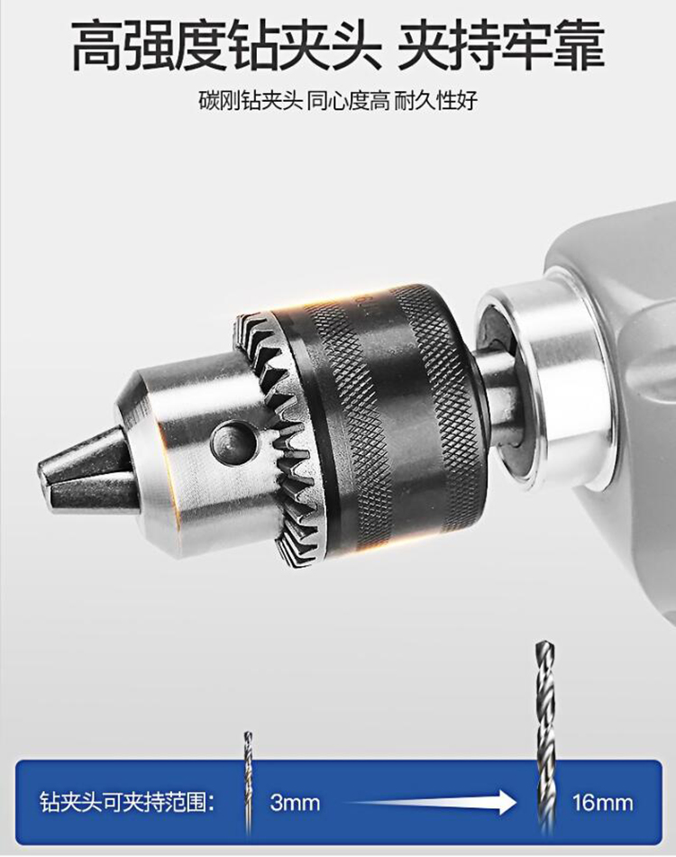 高強度碳鋼鉆夾頭,更牢靠同,鉆夾頭可夾持范圍:3mm~16mm