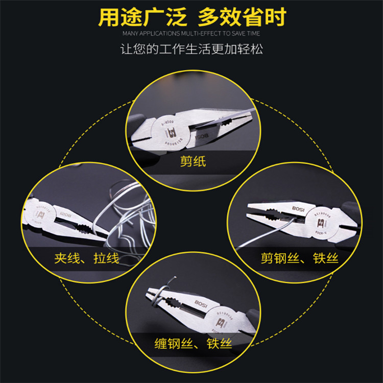得力高碳鋼老虎鉗用于掰彎及扭曲圓柱形金屬零件及切斷金屬絲,其旁刃口也可用于切斷細(xì)金屬絲。