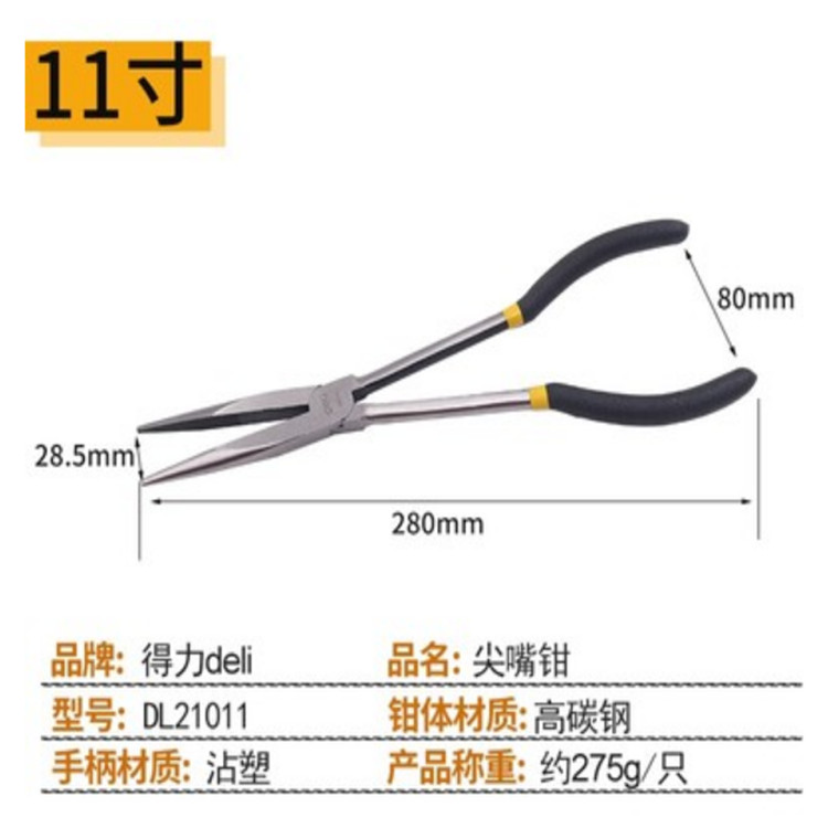 得力加長(zhǎng)尖嘴鉗11"加長(zhǎng)型尖嘴鉗子長(zhǎng)柄尖頭