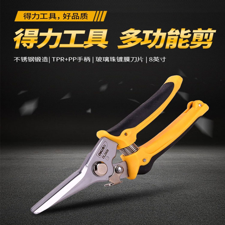 得力工具多功能剪刀電工剪家用電線剪線槽剪塑料剪8英寸不銹鋼剪