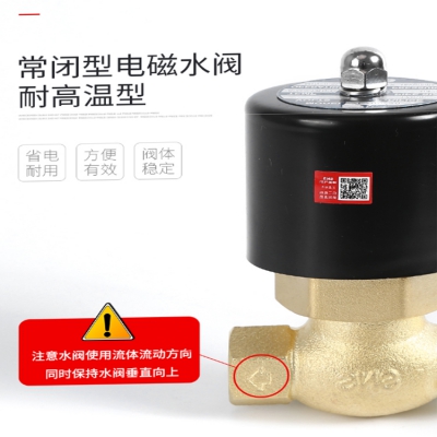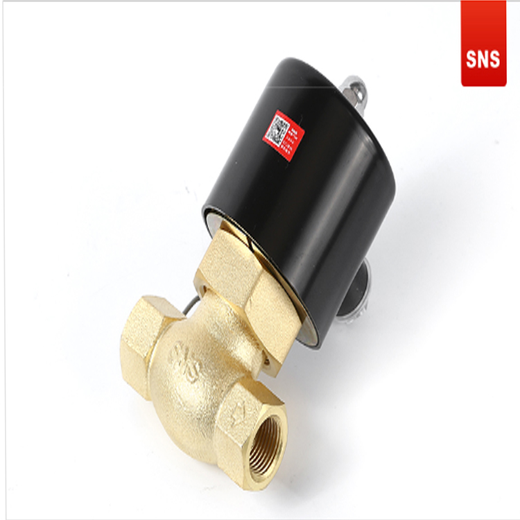 SNS神馳氣動電磁閥常閉型高溫水閥控制線圈,黃銅閥體,方向指引。
