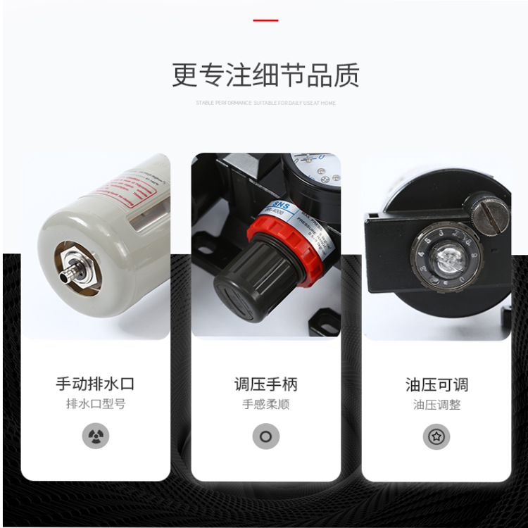 SNS神馳氣動(dòng)油水分離器調(diào)壓手柄手感柔順,適用感更舒適。