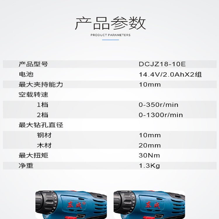 東成充電式起子電鉆DCJZ18-10E,產(chǎn)品參數(shù)圖。