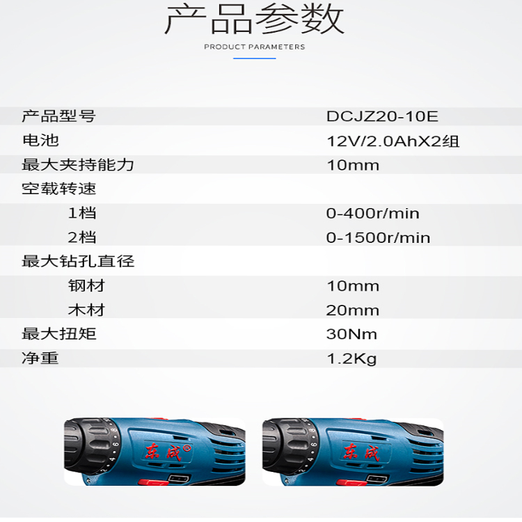 東成充電式起子電鉆DCJZ20-10E,產(chǎn)品參數(shù)圖。