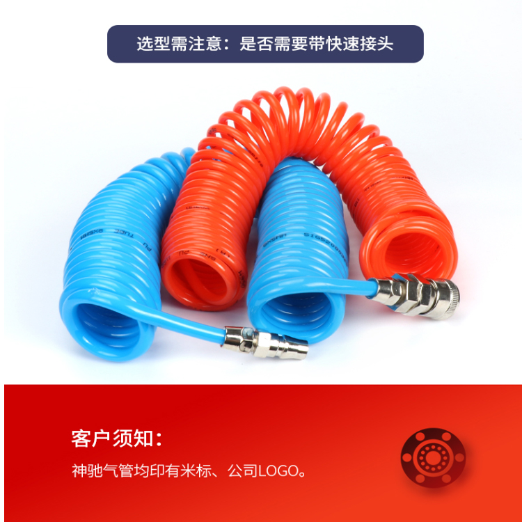 sns神馳氣動(dòng)高壓彈簧氣管選型需要注意,是否需要帶快速接口。