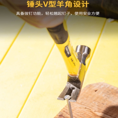 錘子錘頭V型羊角設(shè)計(jì) 具備拔釘功能 輕松翹起釘子 使用安全方便