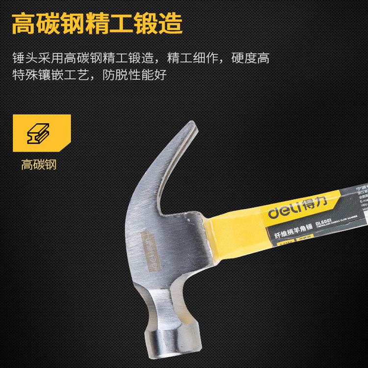 得力工具纖維柄羊角錘碳鋼錘頭鋼制榔頭多功能起釘錘家用錘子