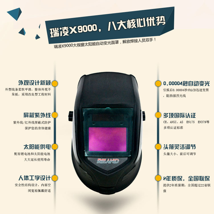 瑞凌X9000自動變光面罩頭帶式氣保等離子焊接防護(hù)面罩氬弧焊帽
