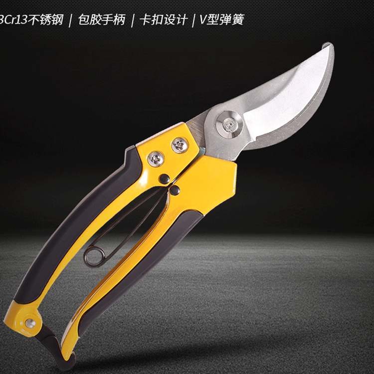園藝剪刀3Cr13不銹鋼、包膠手柄、卡扣設(shè)計(jì)、V型彈簧