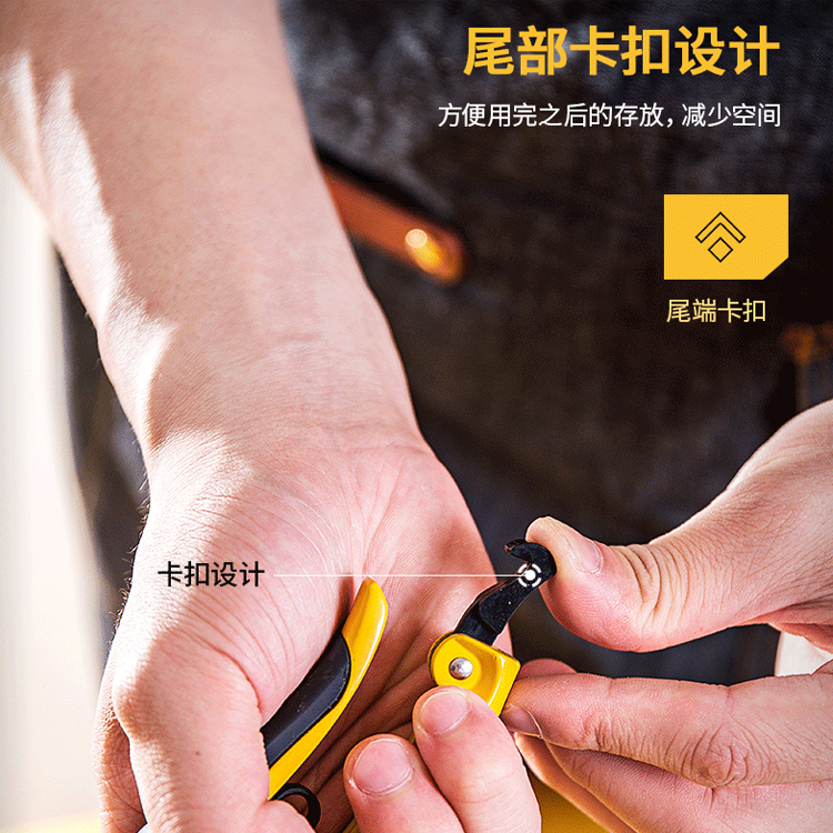 園藝剪刀尾部卡扣設(shè)計(jì),方便用完之后的存放,減少空間